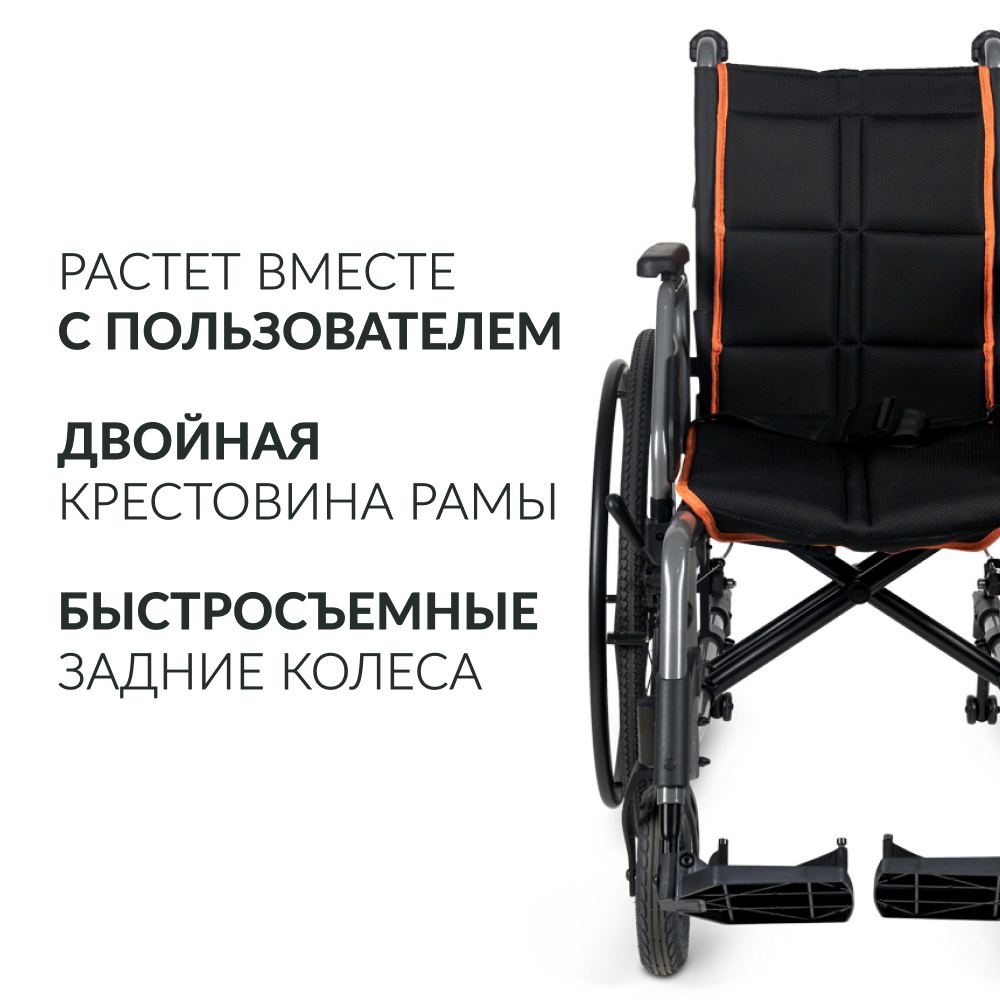 Особенности Множество регулировок; Большой размерный ряд; Быстросъёмные задние колёса