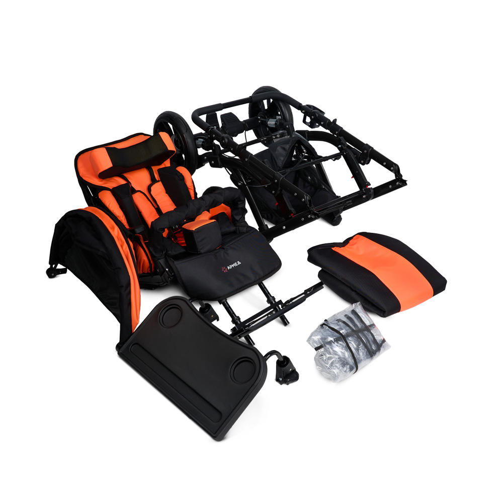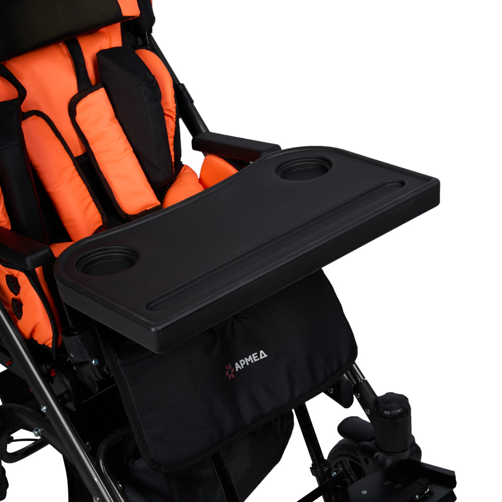 Оснащение Абдуктор, Подголовник, Боковые фиксаторы туловища; Пятиточечный ремень; Защитный бампер; Столик; Чехол для ног; Дождевик; Корзина; Подстаканник