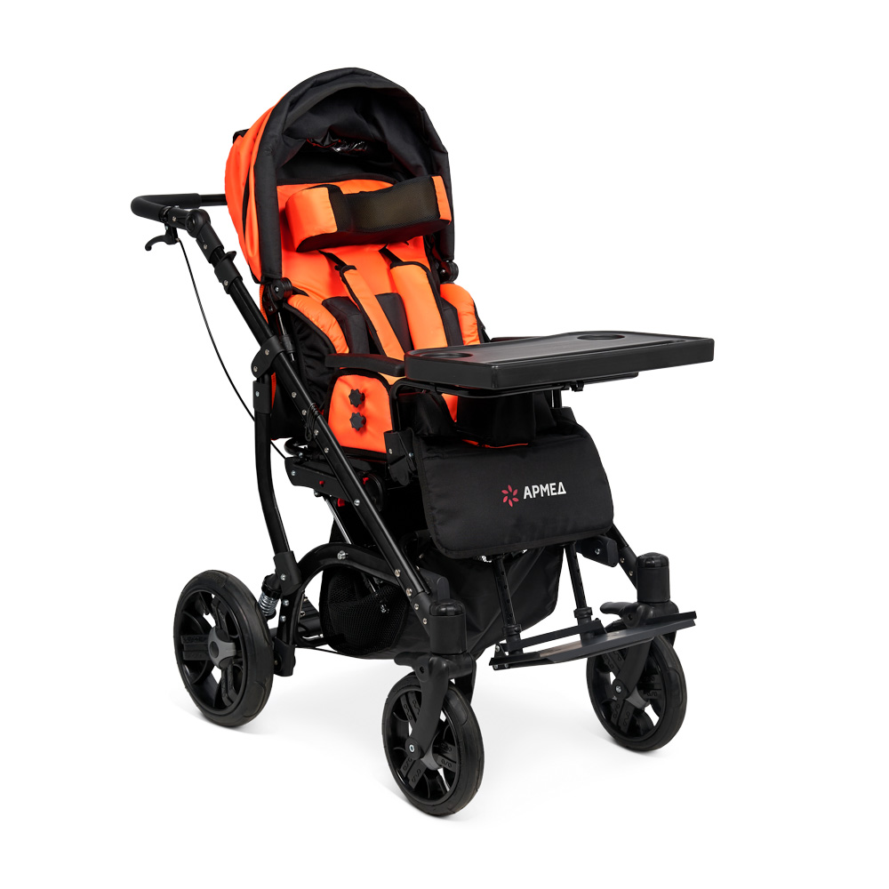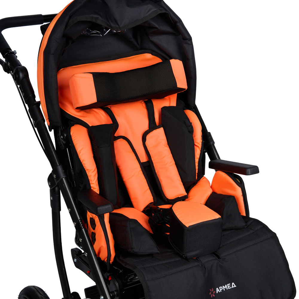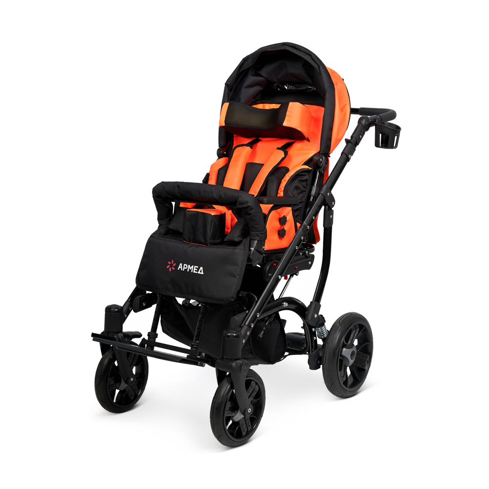 Оснащение Абдуктор, Подголовник, Боковые фиксаторы туловища; Пятиточечный ремень; Защитный бампер; Столик; Чехол для ног; Дождевик; Корзина; Подстаканник