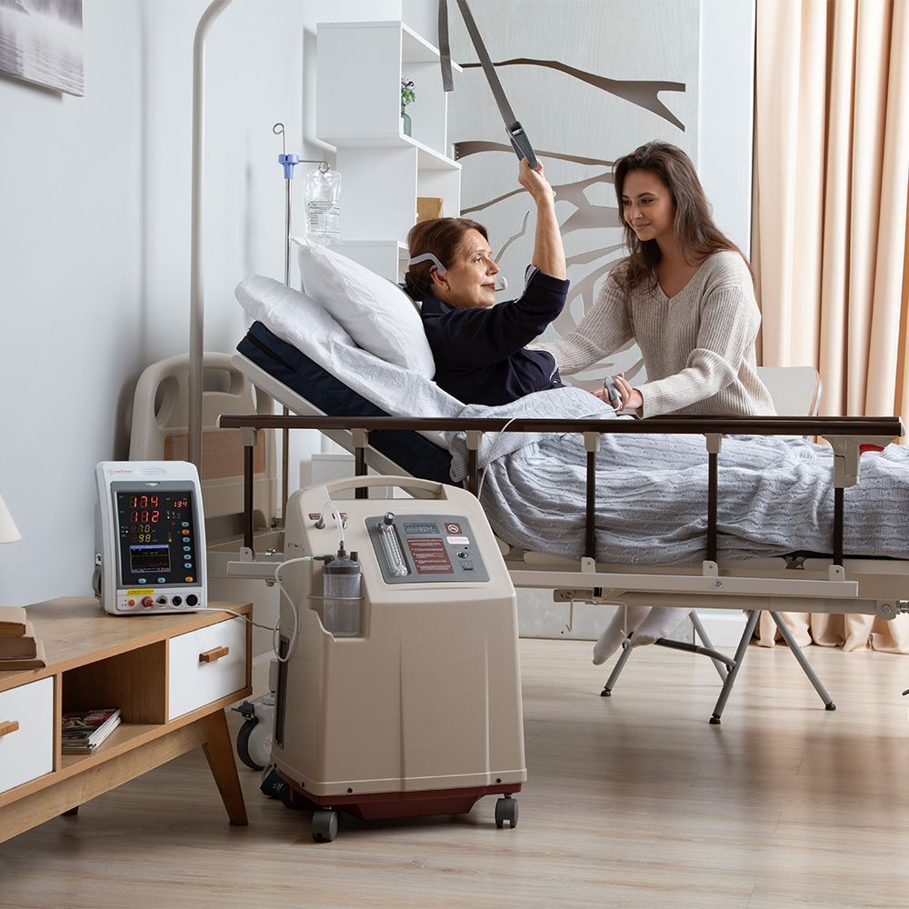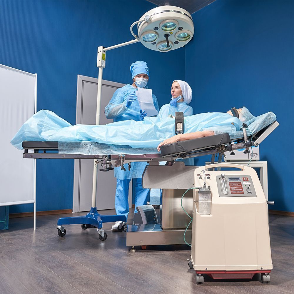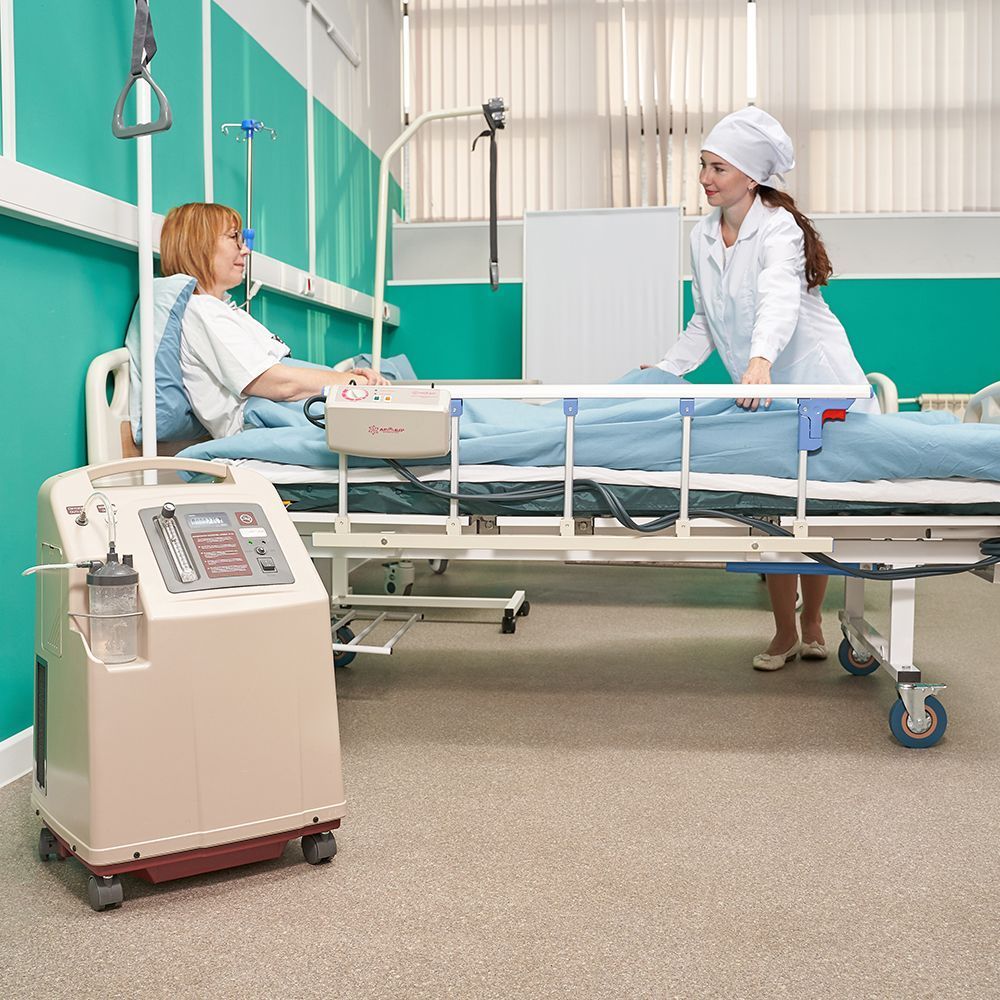 Мощный и безопасный передвижной концентратор кислорода без кислородных баллонов, с выходом для ингаляций. Эта действительно универсальная модель позволяет лечить тяжелобольных пациентов не только в стационаре, но и в домашних условиях. Уникальное решение для борьбы с серьёзными формами гипоксии вне стен больницы.