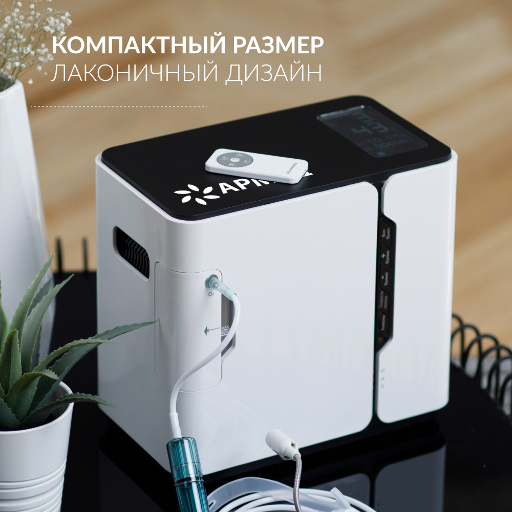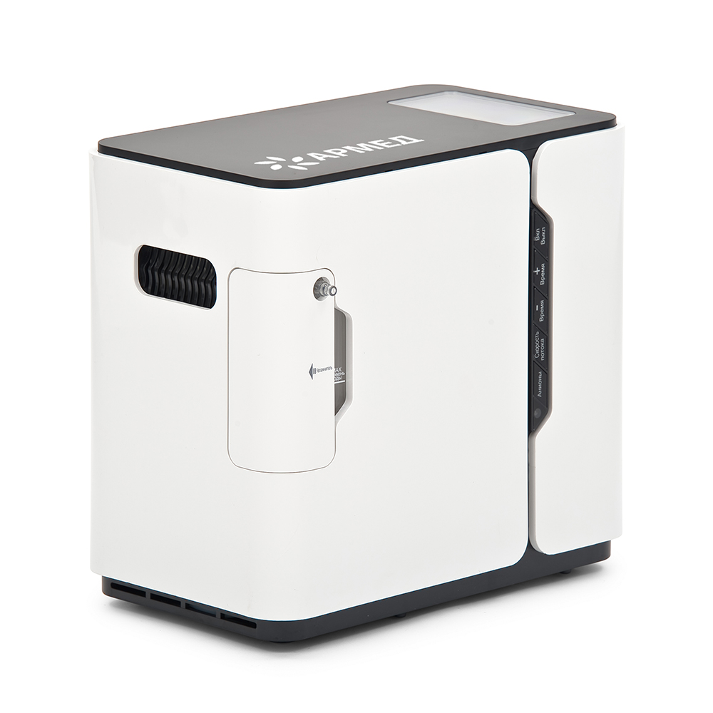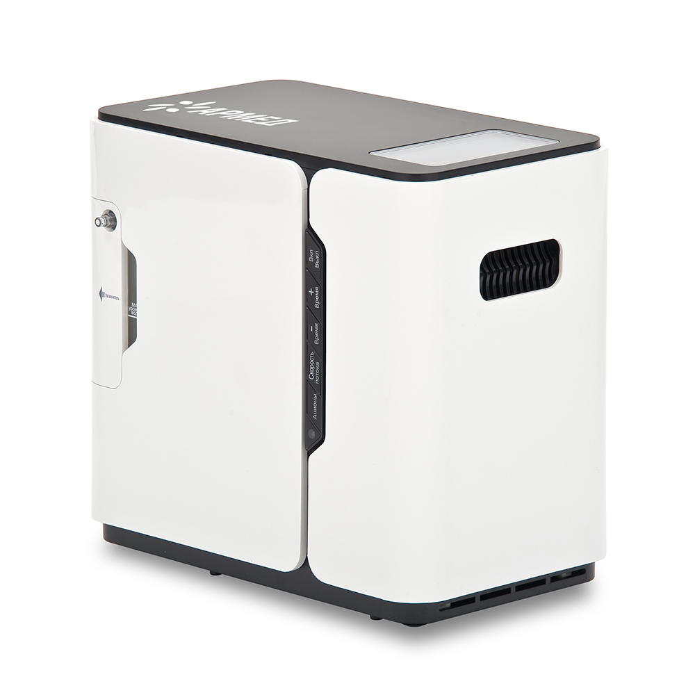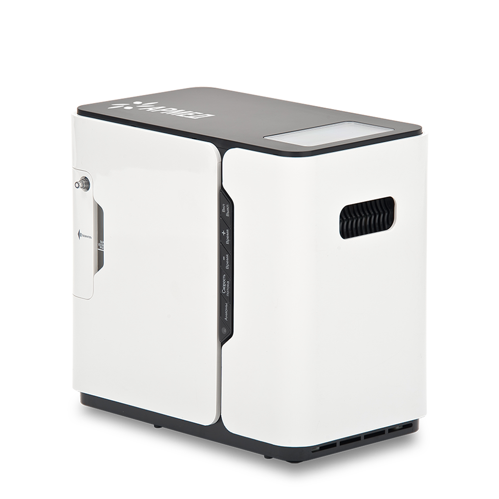 Переносной концентратор кислорода с продуманной конструкцией и понятным управлением. Благодаря компактным размерам, привлекательному внешнему виду и отсутствию кислородных баллонов модель особенно популярна среди домашних пользователей.