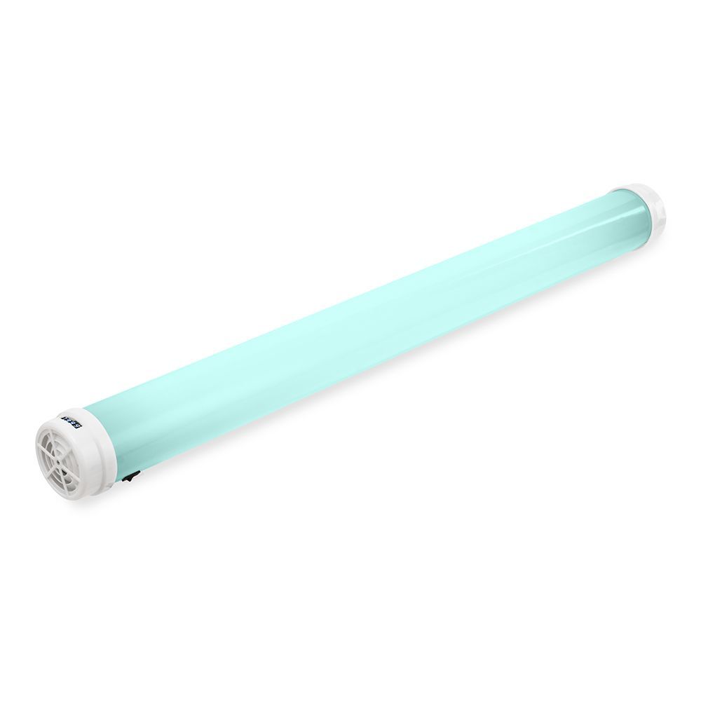 В рециркуляторе установлена бактерицидная лампа мощностью 30 Вт. Корпус выполнен в эффектом небесно-голубом цвете, который удачно подойдет для установки дома, в детском учреждении, в офисе с подходящим интерьером. Высота корпуса составляет 107 см, поэтому наиболее подходящее его расположение на полу. Для профилактики прибор можно включать на 1-2 часа в день, а при заболевании людей или большой проходимости можно оставлять включенным на целый день.