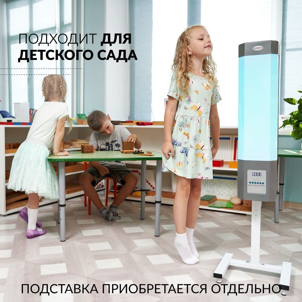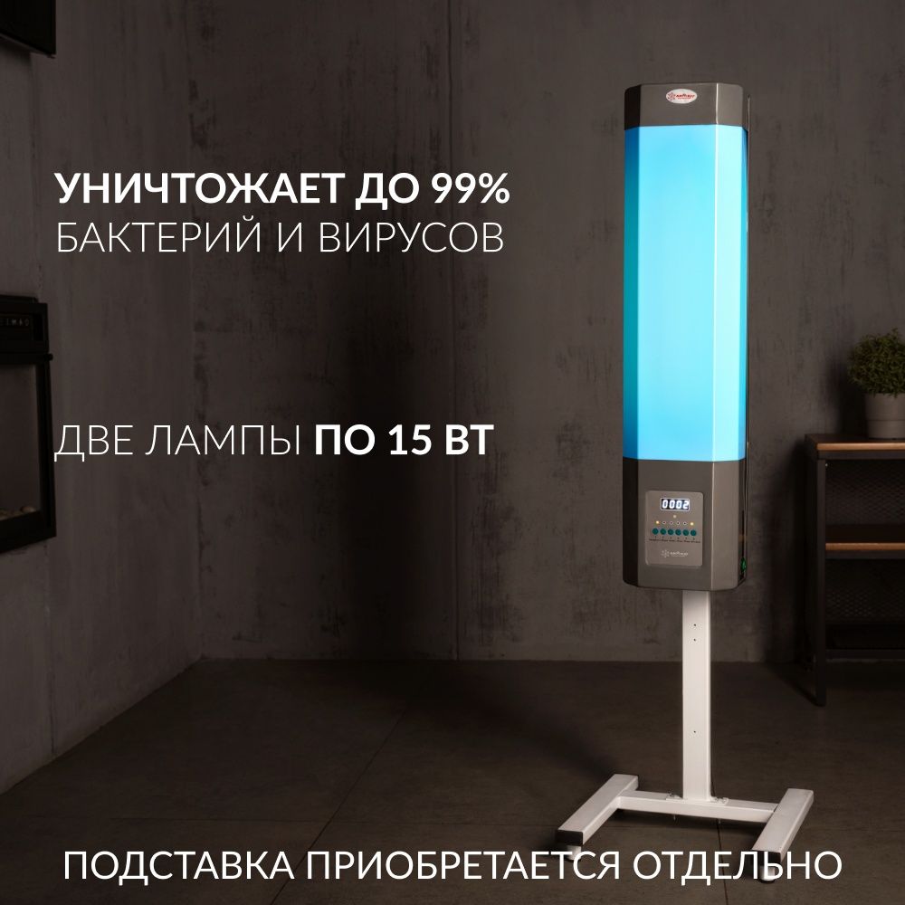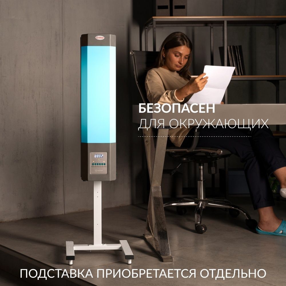 Особенности Таймер работы. Индикатор наработки ламп. Бесперерывная работа в присутствии людей и животных. Возможность установки на передвижную стойку.