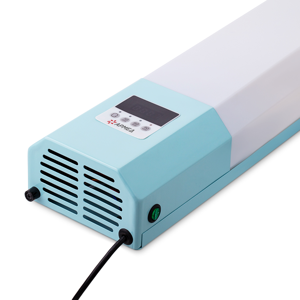 Рециркулятор Армед Safe-Air 230 M – это эффективная очистка воздуха за счет двух бактерицидных ламп по 30 Вт. Прочный корпус защищает лампу от ударов и отлично смотрится в любом интерьере. Это современная функциональная модель с таймером, индикатором наработки ламп и металлическими торцами корпуса.