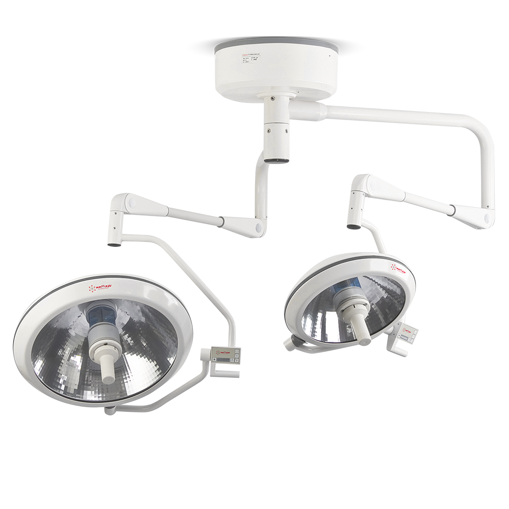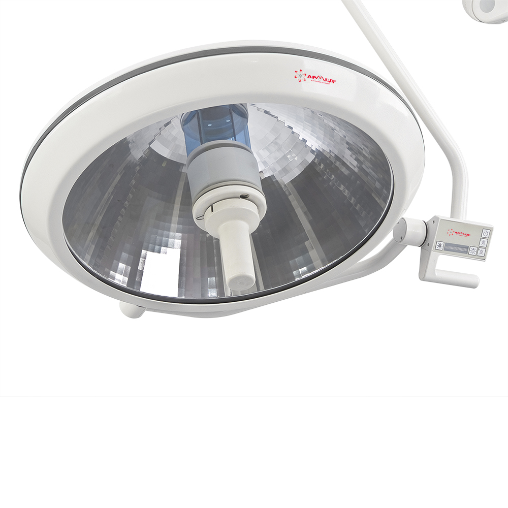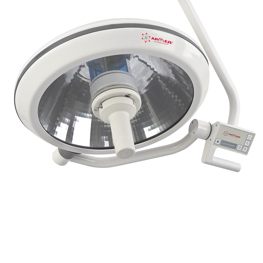Потолочный двухкупольный хирургический светильник Армед ЕЛ700/500 отечественного производства оснащён галогеновыми лампами и системой мультизеркального отражения, обеспечивающей бестеневое освещение. Мощность светильника позволяет использовать его во время самых сложных операций. Конструкция состоит из двух рукавов с куполами диаметром 70 см и 50 см.